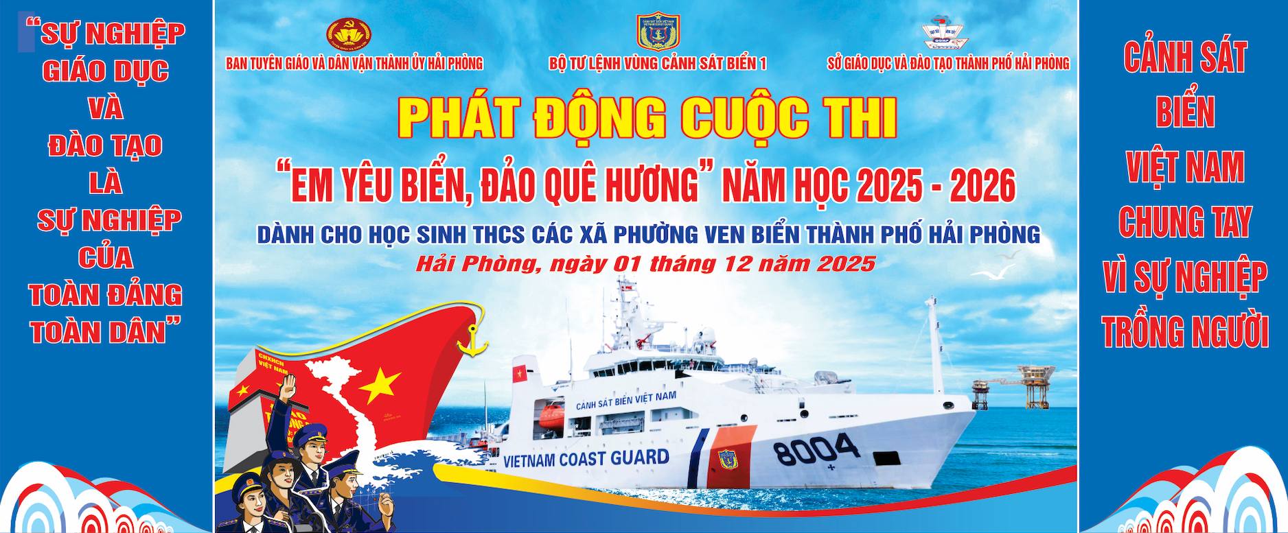 Thực hiện Kế hoạch số 4934/KH-BTL ngày 21/11/2025 của Bộ tư lệnh vùng cảnh sát biển 1 về Tổ chức Cuộc thi “Em yêu biển, đảo quê hương” năm học 2025-2026 dành cho học sinh trung học cơ sở các xã, phường ven biển của thành phố Hải Phòng;