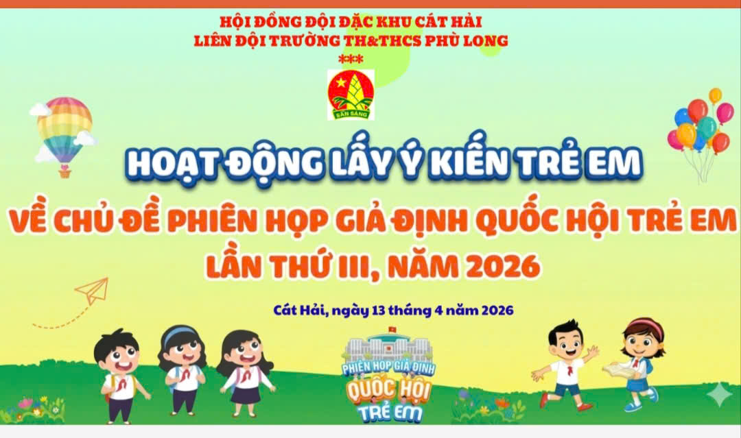 Hướng tới phiên họp giả định “Quốc hội trẻ em” lần thứ III, năm 2026; Nhằm phát huy quyền tham gia của trẻ em vào các vấn đề liên quan đến chính mình, Liên đội trường TH&THCS Phù Long đã tổ chức lấy ý kiến trẻ em về chủ đề phiên họp giả định "Quốc hội trẻ em" lần thứ III, năm 2026.